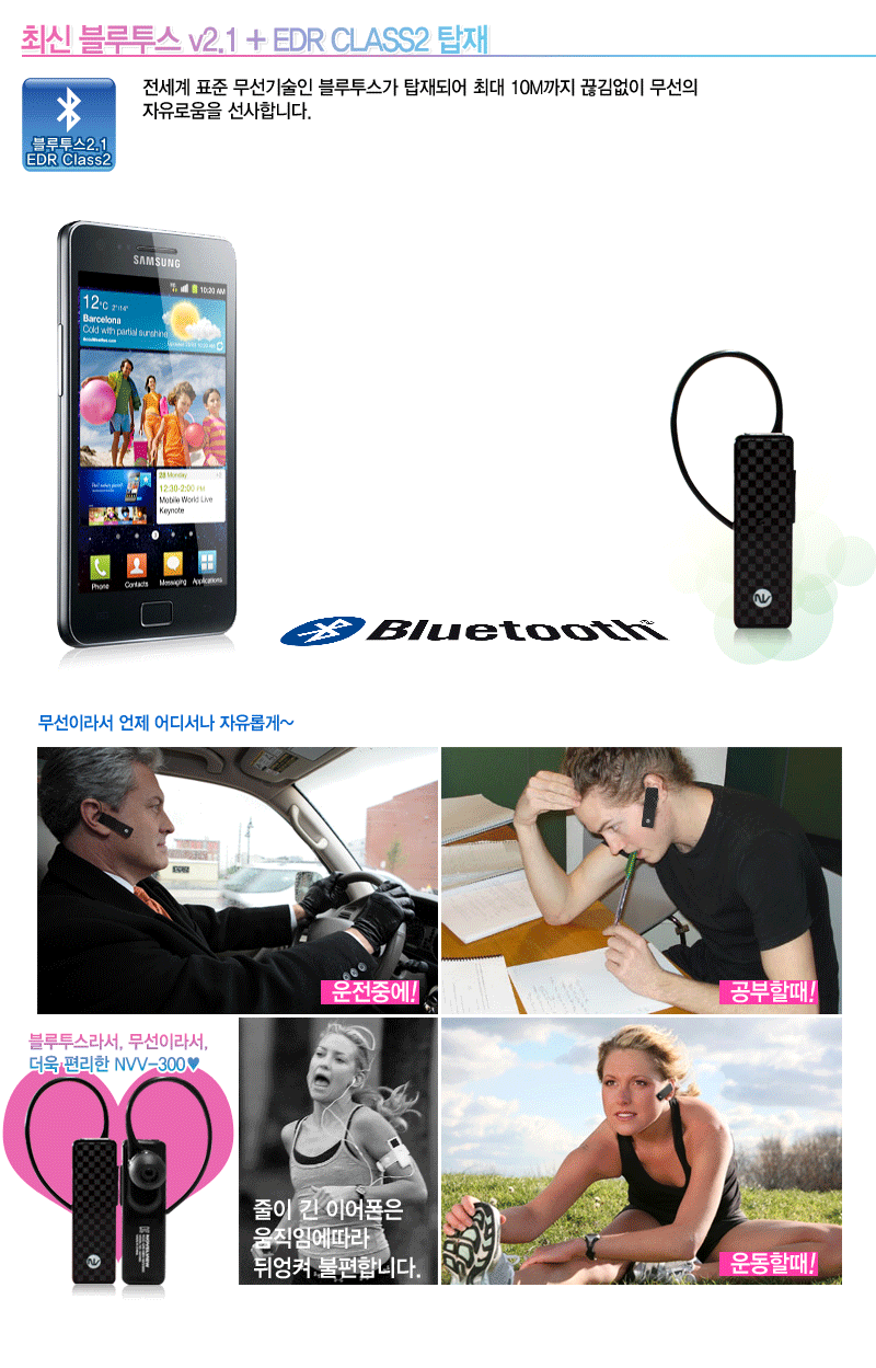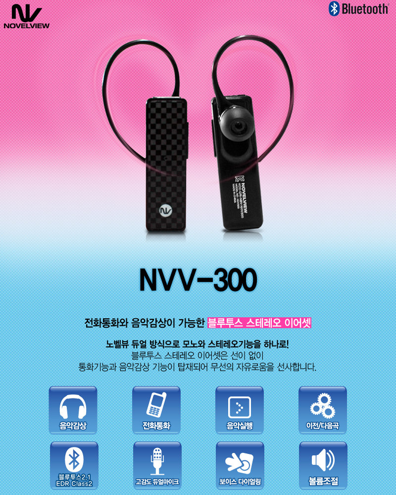노벨뷰 스테레오 블루투스 이어폰 NVV300
