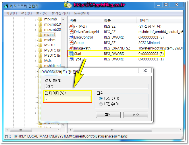 레지스트리 파일 다운로드 : ide2ahci_registry.zip